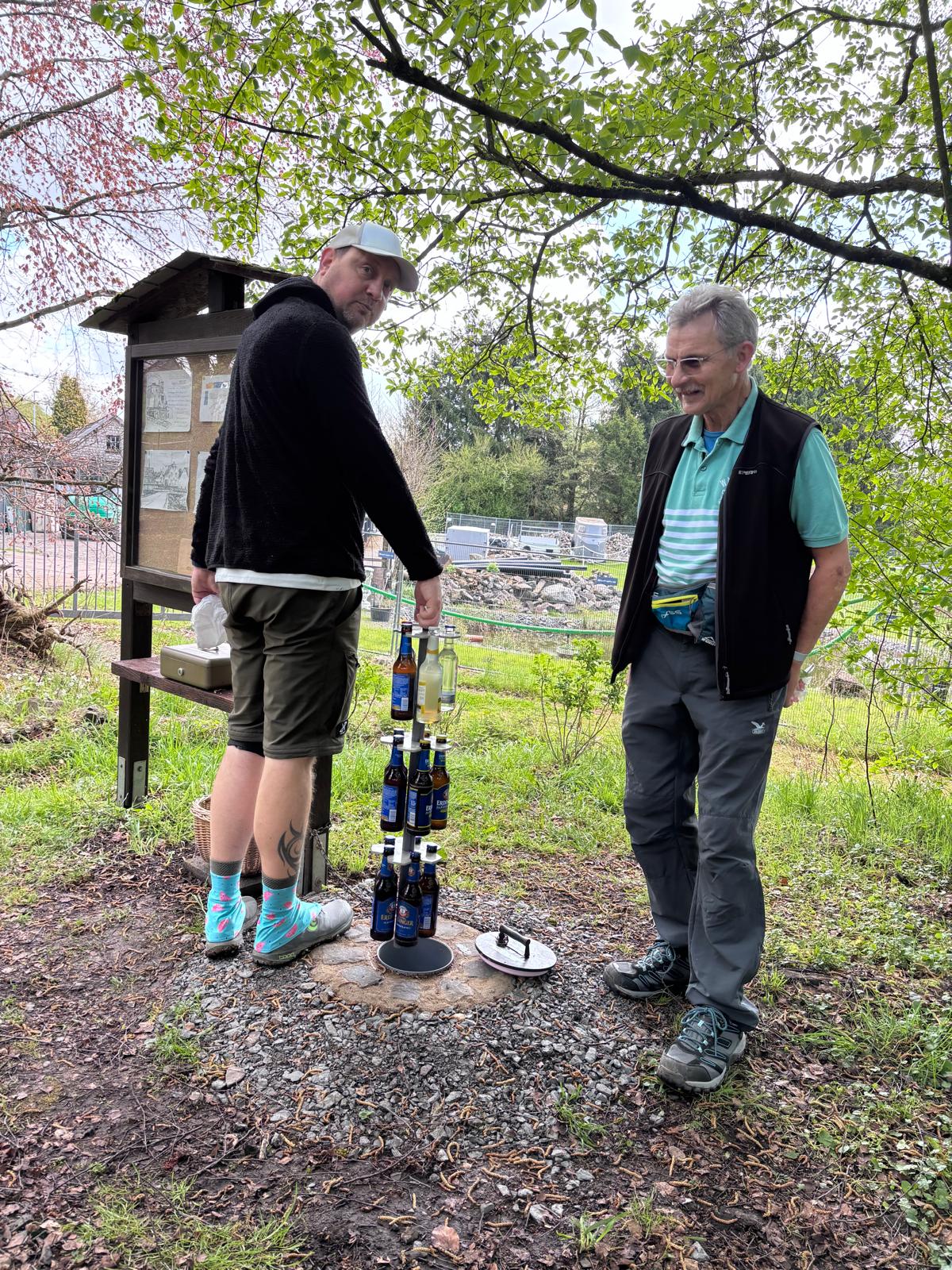 “. Hier hat der Eisenbahnerverein einen schönen Rastplatz angelegt, der sogar einen wohl gefüllten „Erd-Kühlschrank“ aufweisen konnte. Wir feierten diesen schönen Ort mit einer längeren Rast.