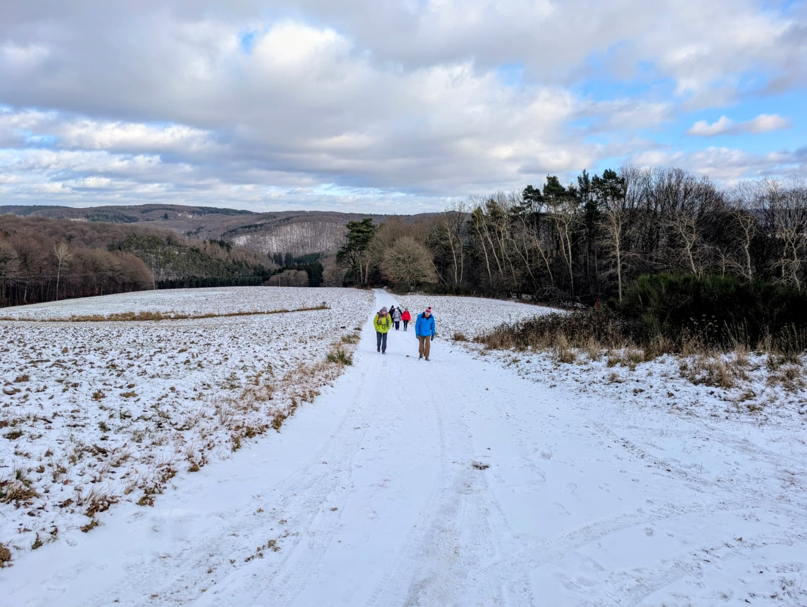 Bei strahlendem Sonnenschein und einer leichten Schneeauflage trafen sich 10 Wanderfreundinnen und Wanderfreunde um 10:30 Uhr in Bad Münstereifel-Houverath am Sportplatz.