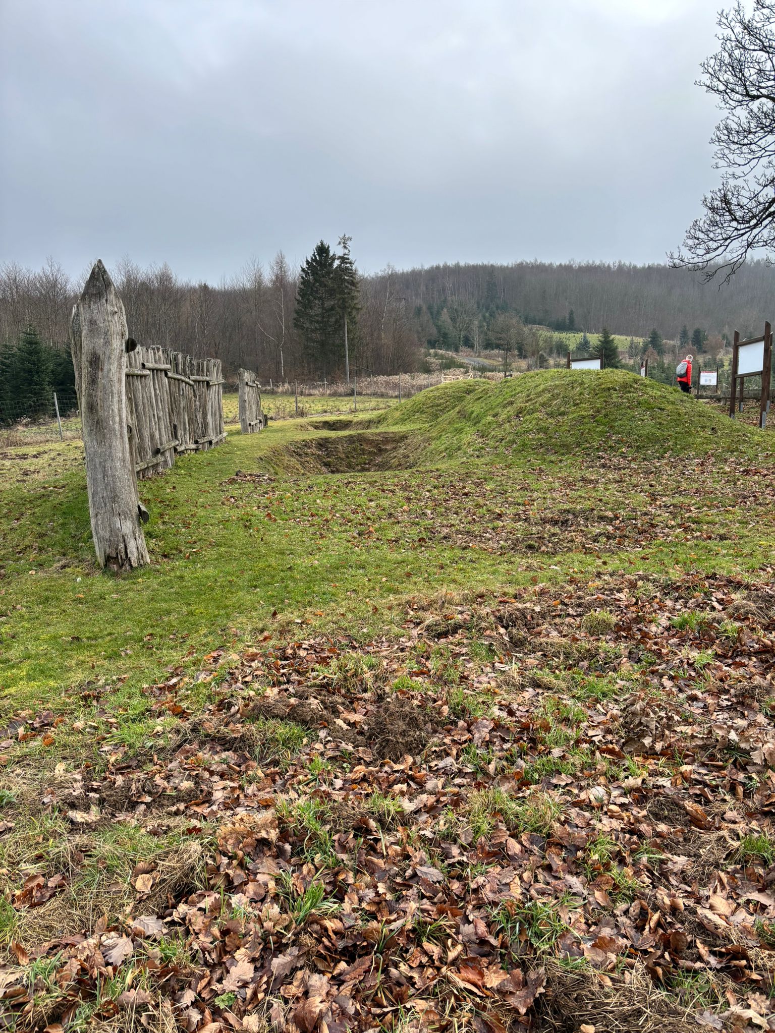 Nach einem weiteren kurzen Anstieg standen wir vor dem Nachbau eines hölzernen Limesturms, den wir bei besserer Sicht sicherlich auch bestiegen hätten.